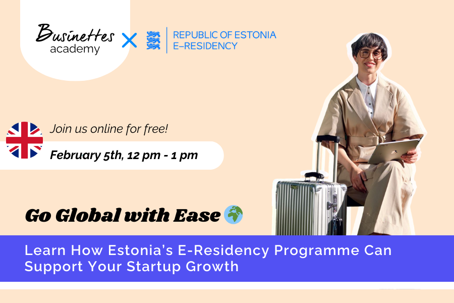 In this 60-minute online workshop on February 5th, from 12:00–1:00 PM UK time (1:00–2:00 PM CET), we’ll explore how e-Residency works in practice and why it can be a powerful tool for startups in the Businettes network.